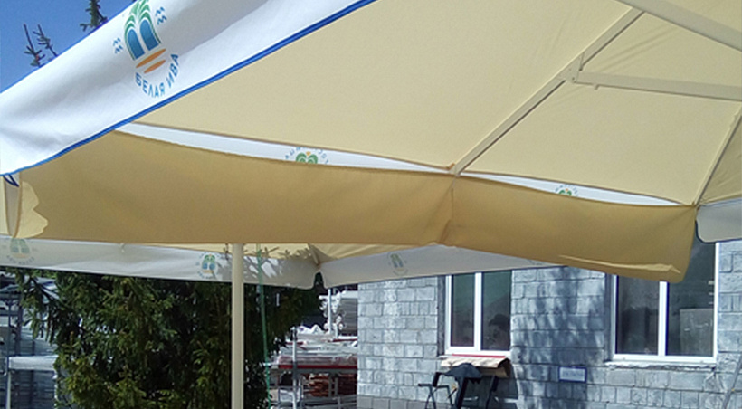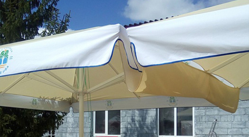 Круглой или квадратной формы, заказчик выбирает для себя в соответствии с задачами, которые стоят перед бизнесом . Зонты круглой формы более прочные, потому что имеют лучи одинаковой длины и принимают ветровую нагрузку равномернее. Зонты квадратной формы удобнее составить вместе и они имеют большую площадь по отношению к такого же размера зонтам.