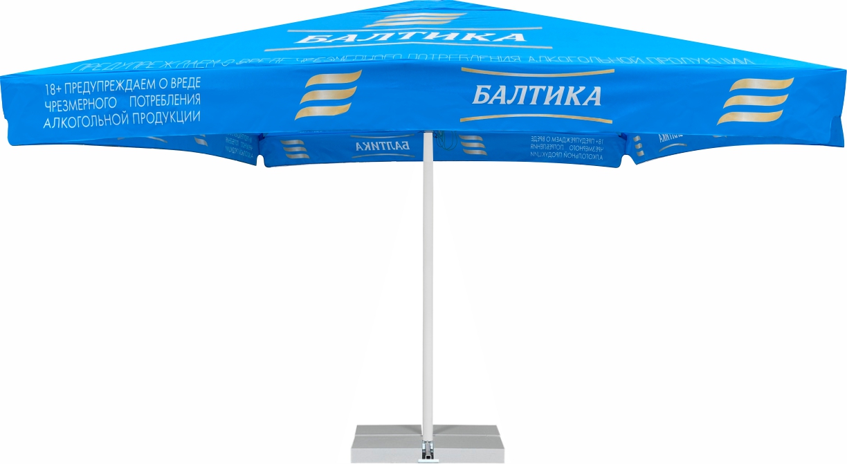 Круглой или квадратной формы, заказчик выбирает для себя в соответствии с задачами, которые стоят перед бизнесом . Зонты круглой формы более прочные, потому что имеют лучи одинаковой длины и принимают ветровую нагрузку равномернее. Зонты квадратной формы удобнее составить вместе и они имеют большую площадь по отношению к такого же размера зонтам.